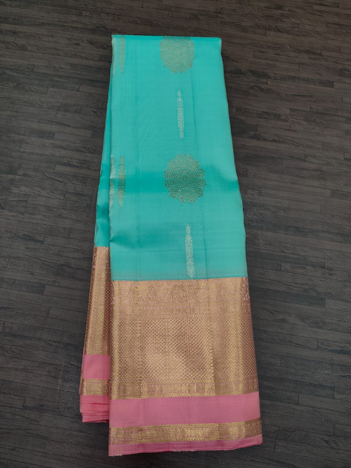 Bluish Green Kanjivaram Saree with Dark Rose Border