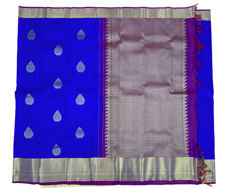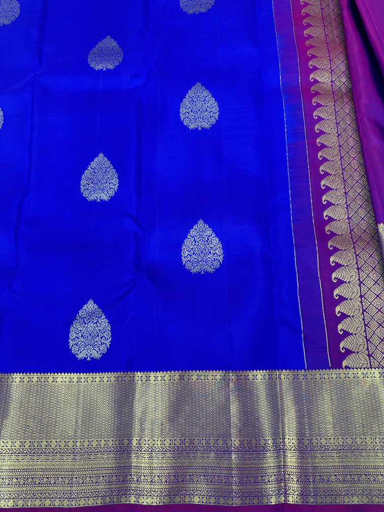 Cobalt Blue Kanjivaram Saree with Purple Border