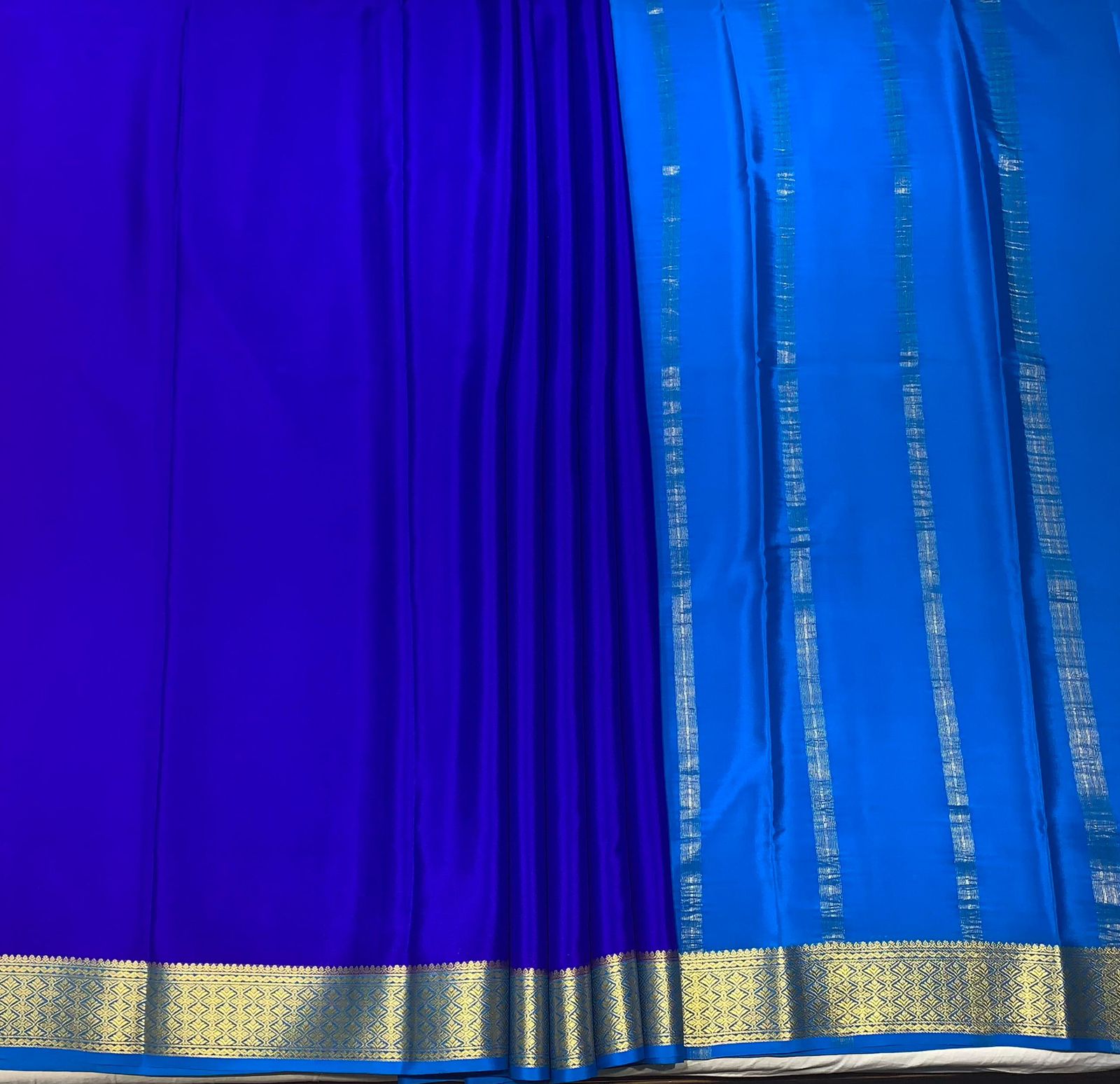 Dark Blue Mysore Pure Silk Saree With Bright Blue Pallu