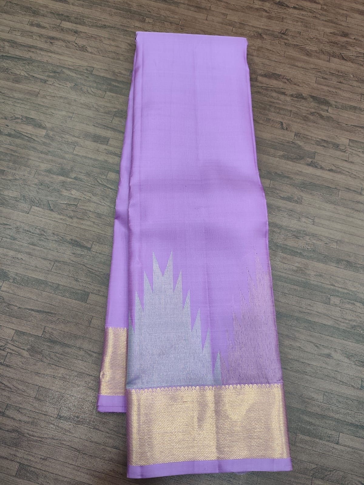 Deep Lavender Kanjivaram Saree with Gopuram Zari Border
