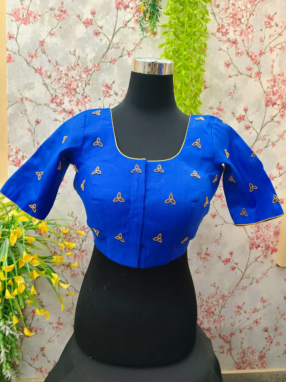 This distinguished royal blue blouse showcases meticulously crafted small bhutas, creating a subtle yet refined pattern across...